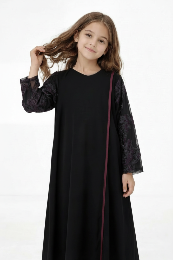 الوصف : عباية مرِحة و أنيقة للبنات ، أقمشة بجودة عالية و قصة واسعة مريحة و لا تعيق اللعب و المرح 😍🎀.