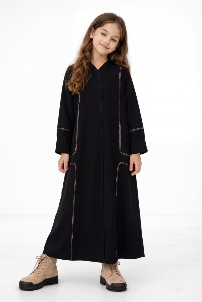 الوصف : عباية مرِحة و أنيقة للبنات ، أقمشة بجودة عالية و قصة واسعة مريحة و لا تعيق اللعب و المرح 😍🎀.