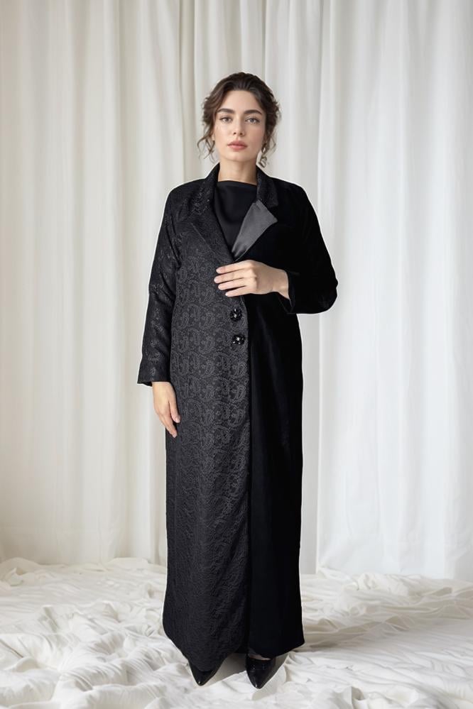 نوع القماش : مخمل بسواد عالي و غير ثقيل
