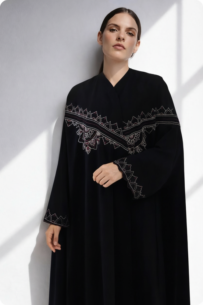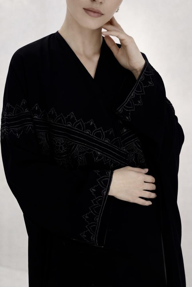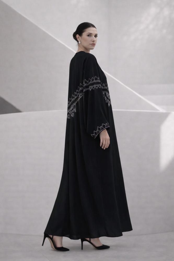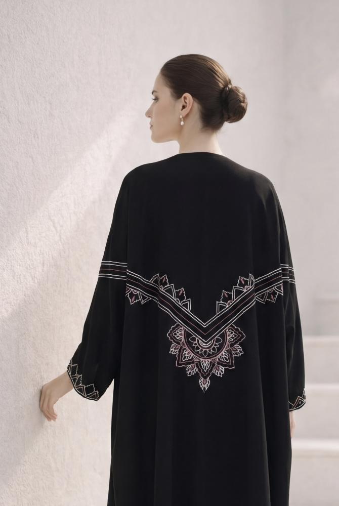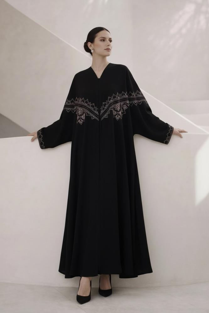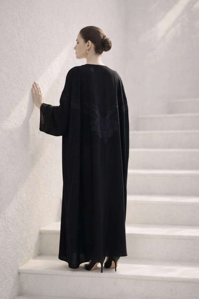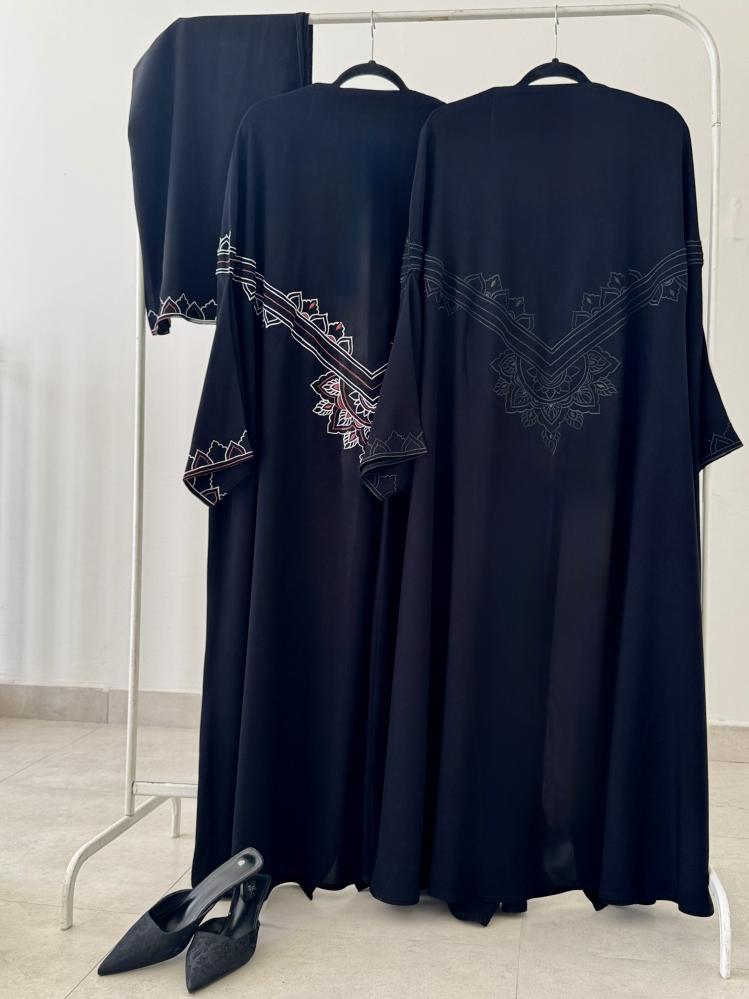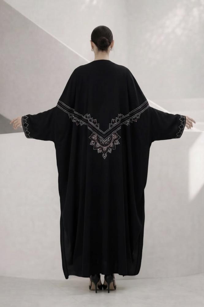 عباية كيب في غاية التفرد و الأناقة ، مطرزة بحرفية عالية بنقش هندسي في الأمام و الخلف و الأكمام