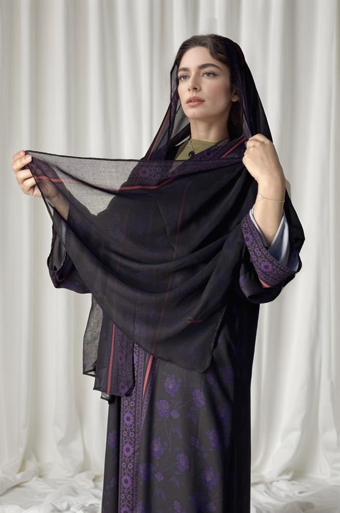 ✦ طرحة ثابتة مطبوعة بنفس ستايل العباية.