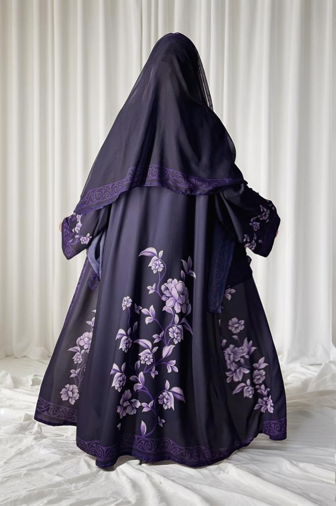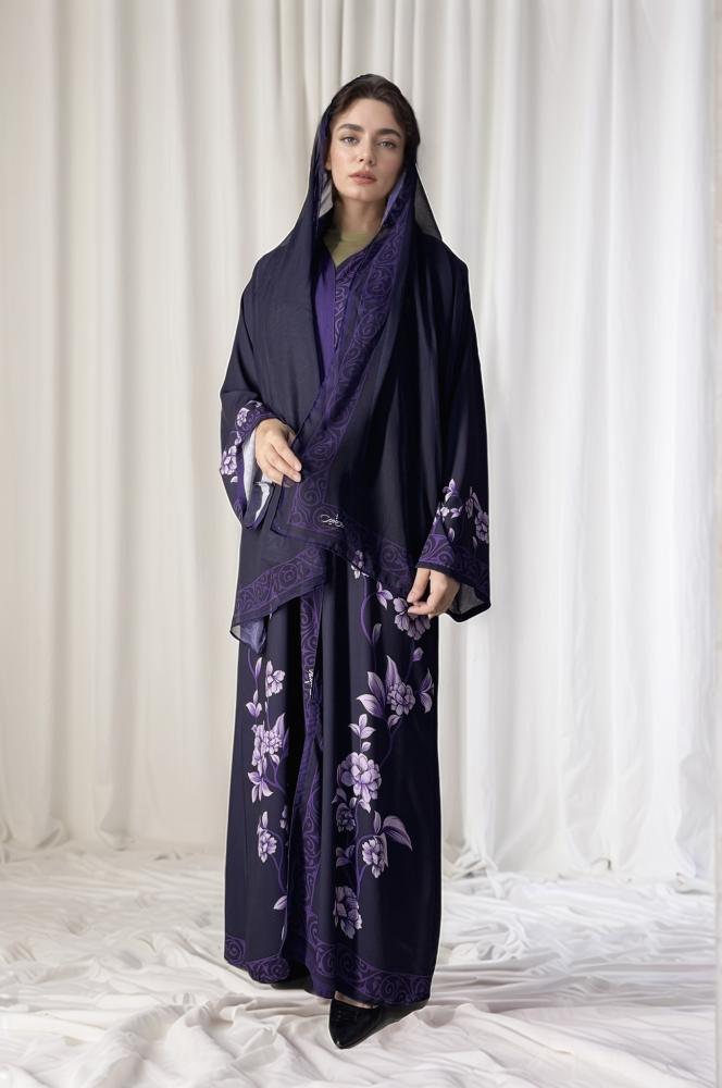✦ طرحة ثابتة مطبوعة بنفس ستايل العباية.
