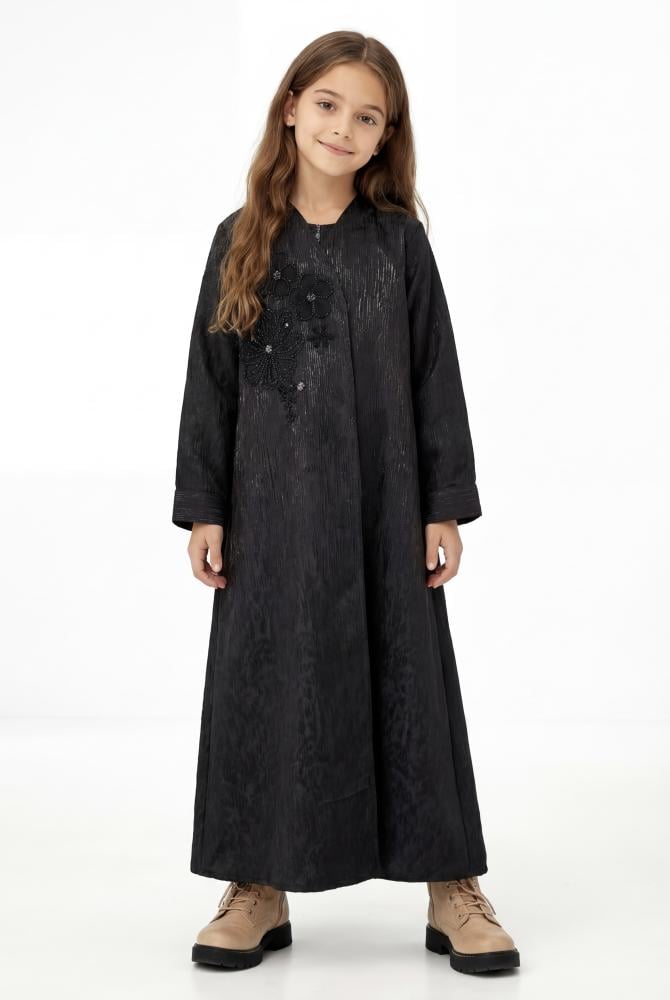 الوصف : عباية مرِحة و أنيقة للبنات ، أقمشة بجودة عالية و قصة واسعة مريحة و لا تعيق اللعب و المرح 😍🎀.