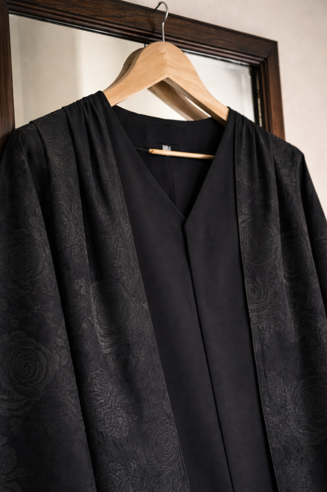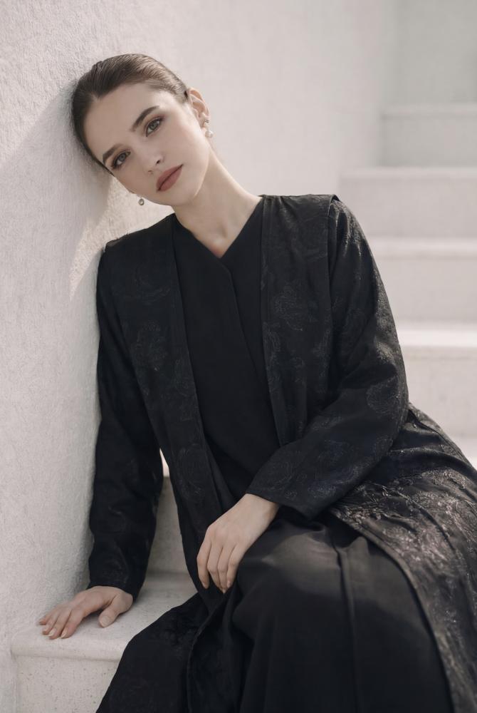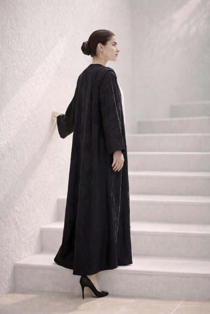 الوصف : عباية رقيقة بتشجيرة ورود الروز ، تتميز بطيات أنيقة على الكتف ، و قطعة داخلية لإغلاق الصدر