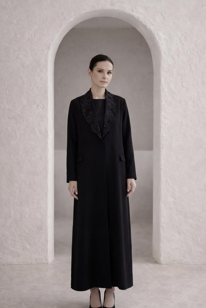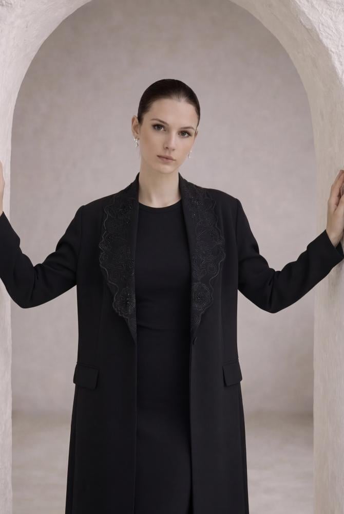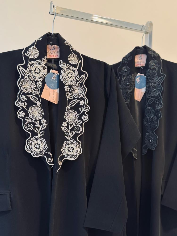 بليزر راقي بياقة مطرزة و مشغولة بحرفية عالية مع تخريم و شك خرز .